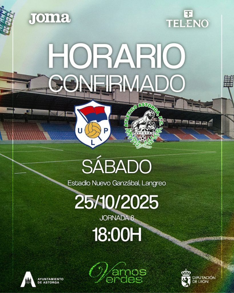 Horario confirmado para la disputa una nueva jornada en casa, que llevará al Atlético Astorga F.C. a jugar la decima jornada ante el C.D. La Virgen del Camino.